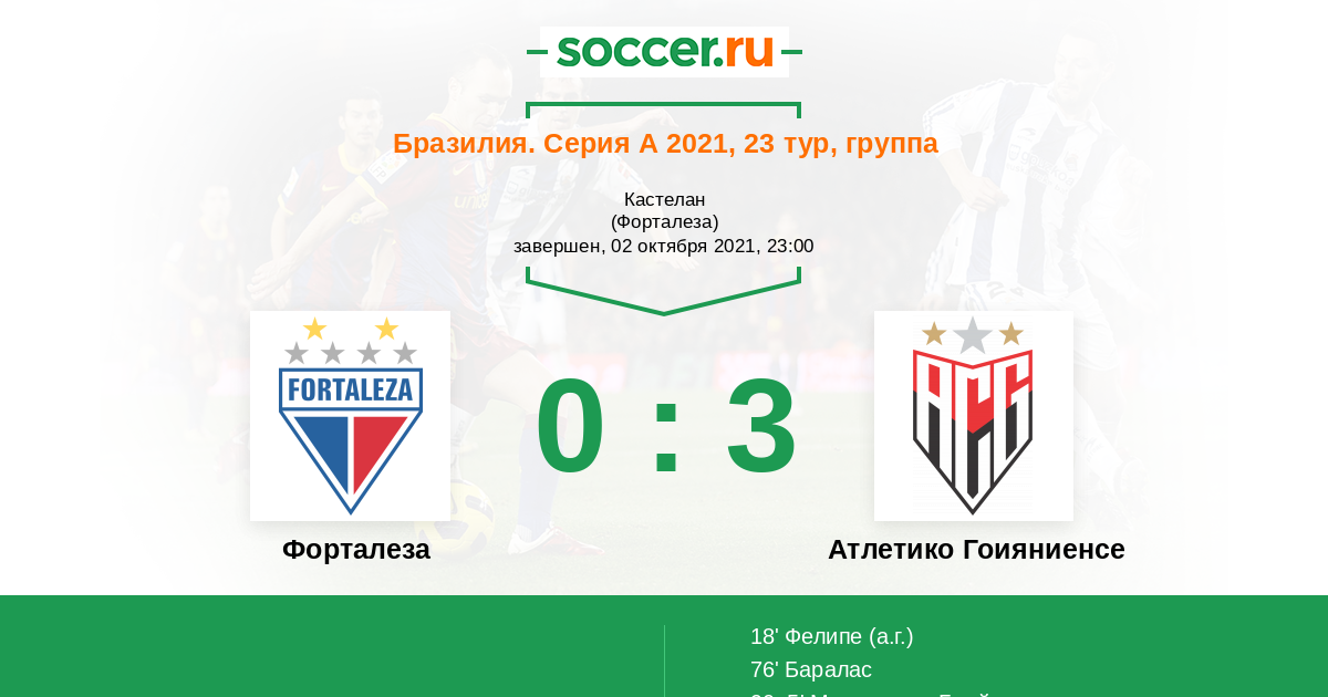 Протокол матча Форталеза против Атлетико Гоияниенсе