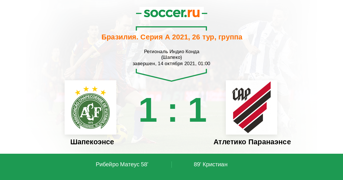 Протокол матча Шапекоэнсе против Атлетико Паранаэнсе