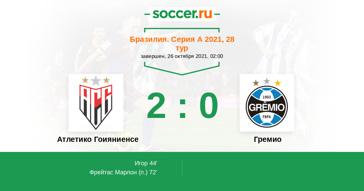 Протокол матча Атлетико Гоияниенсе против Гремио