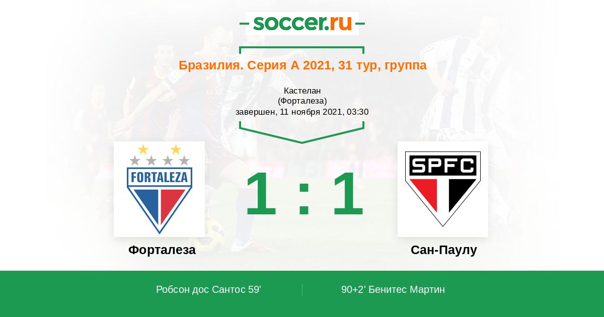 Протокол матча Форталеза против Сан-Паулу