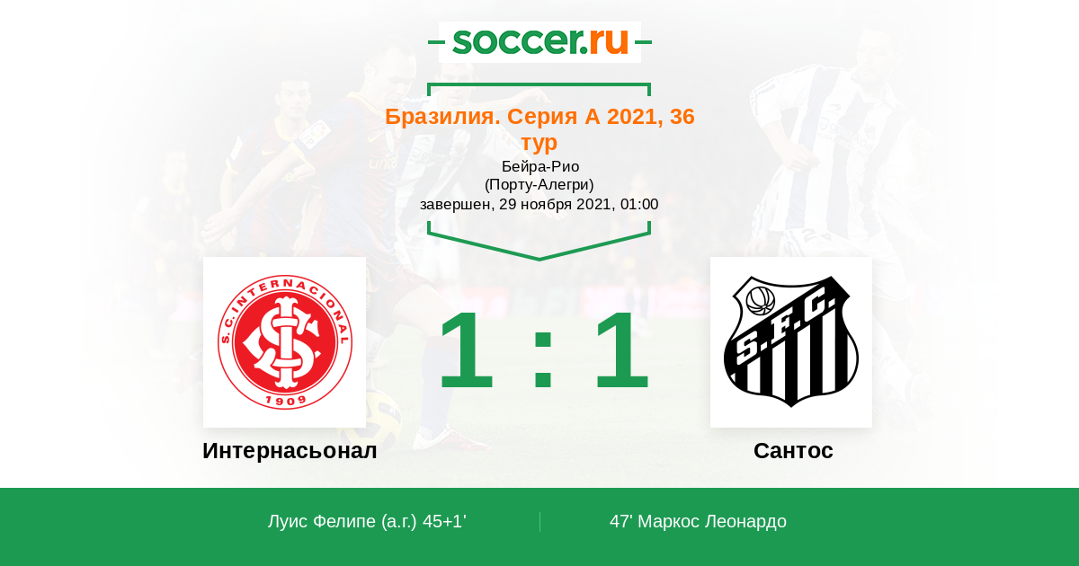 47' (1:1) Маркос Леонардо (36) (Данило (22))