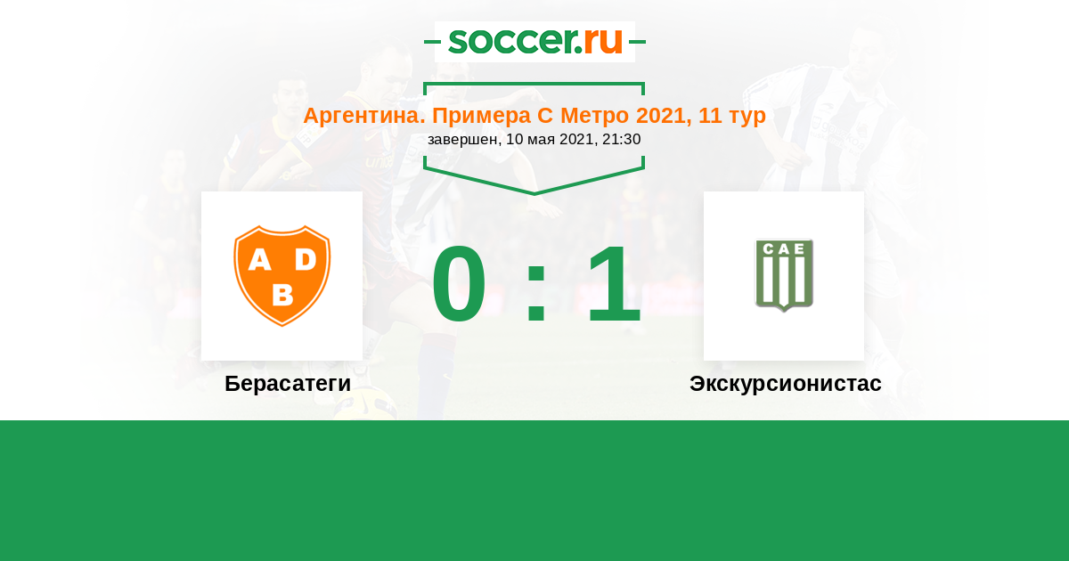 Аргентина. Примера С Метро 11.09.2010 Экскурсионистас Логотип футбольный клуб Экскурсионистас (Буэнос-Айрес) 0:0 Логотип футбольный клуб Берасатеги (Буэнос-Айрес) Берасатеги