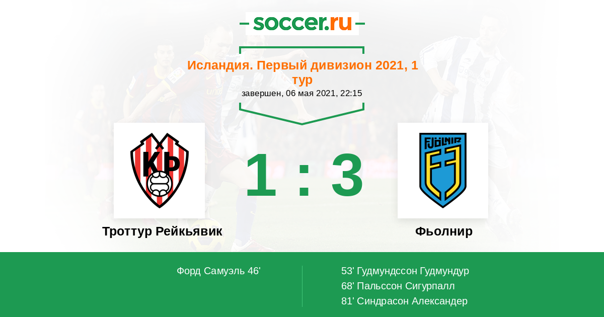 Протокол матча Троттур Рейкьявик против Фьолнир