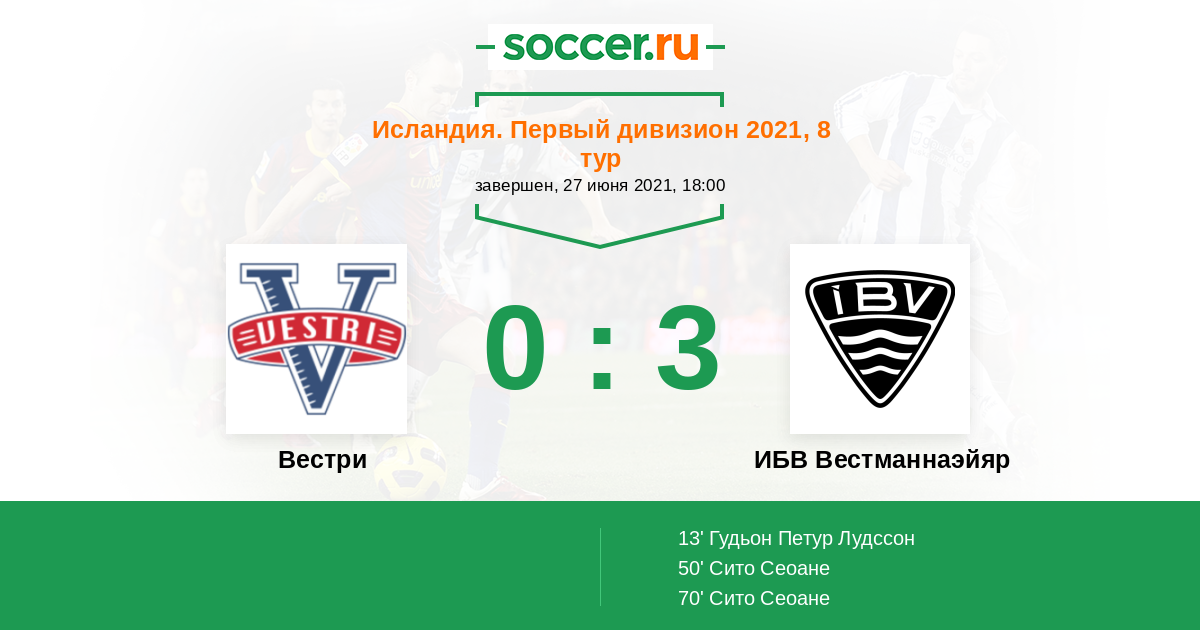 Протокол матча Вестри против ИБВ Вестманнаэйяр