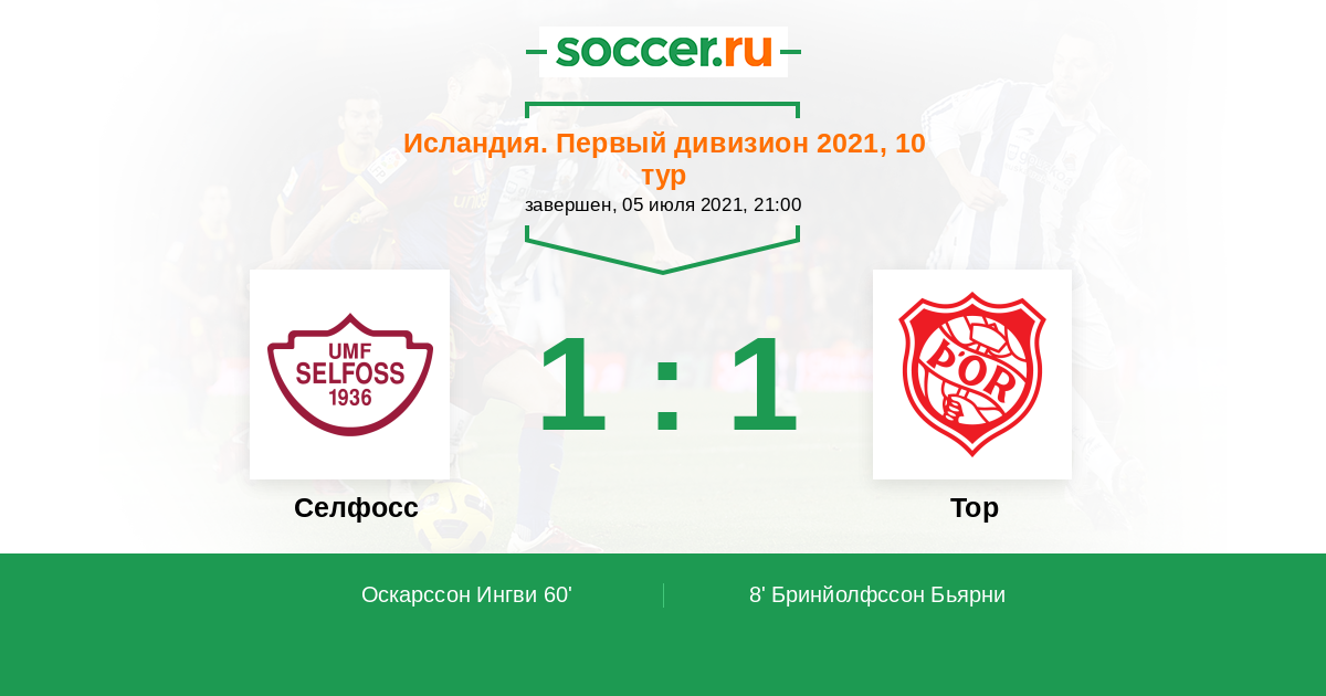 Протокол матча Селфосс против Тор