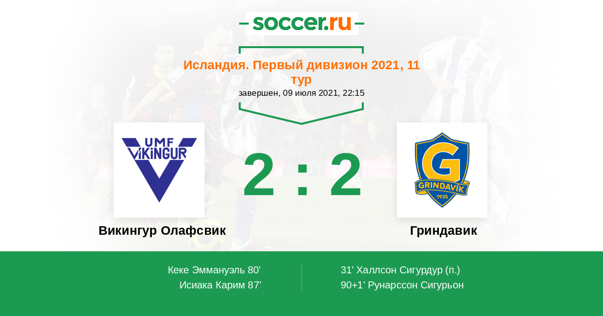 Гол90+1' (2:2) Рунарссон Сигурьон