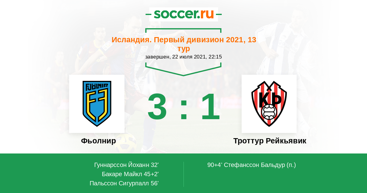 Протокол матча Фьолнир против Троттур Рейкьявик