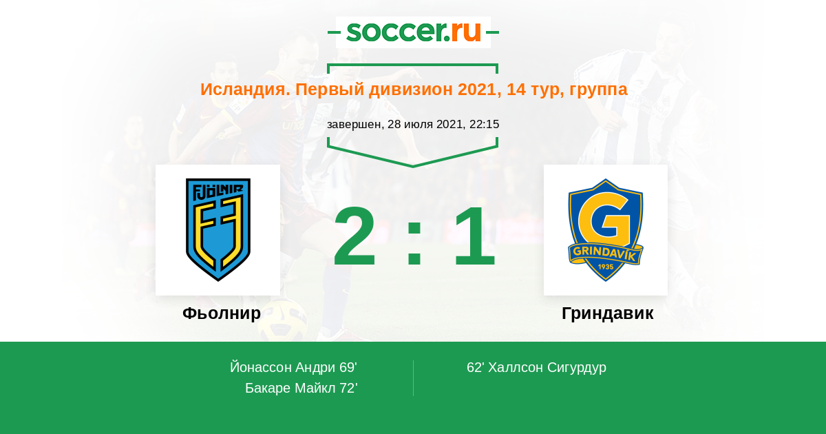 Протокол матча Фьолнир против Гриндавик