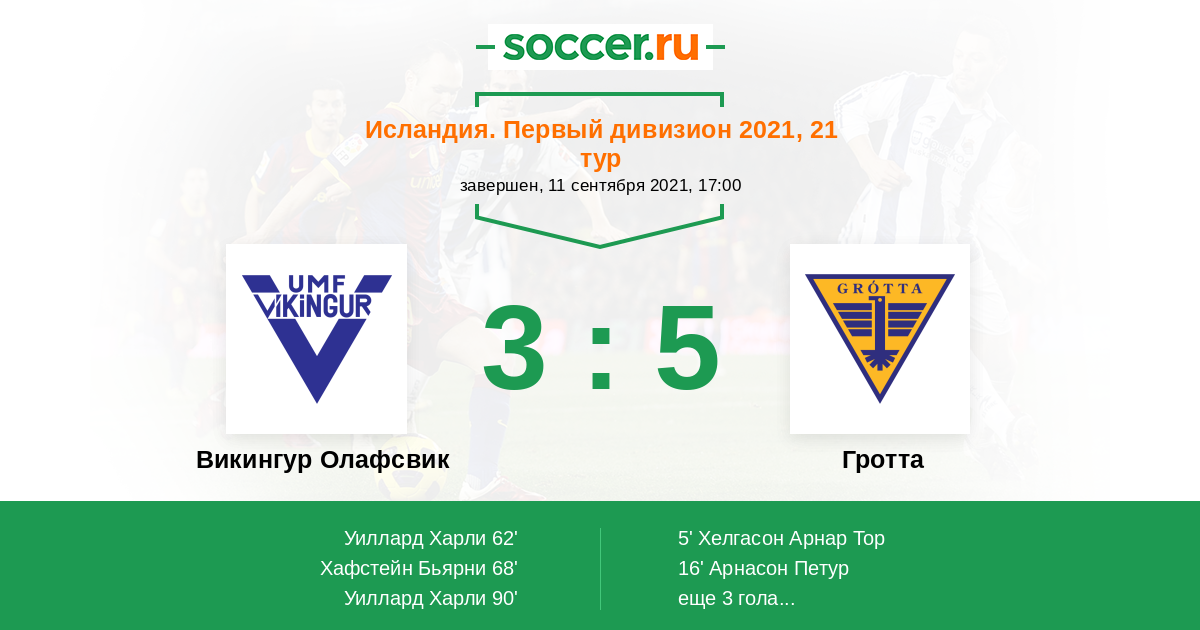 Протокол матча Викингур Олафсвик против Гротта