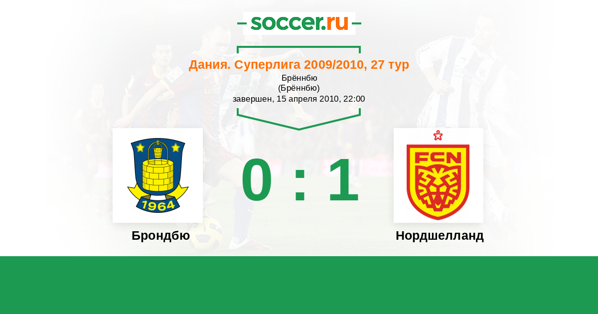 Дания. Суперлига 01.11.2009 Нордшелланд Логотип футбольный клуб Нордшелланд (Фарум) 0:1 Логотип футбольный клуб Брондбю (Брённбю) Брондбю