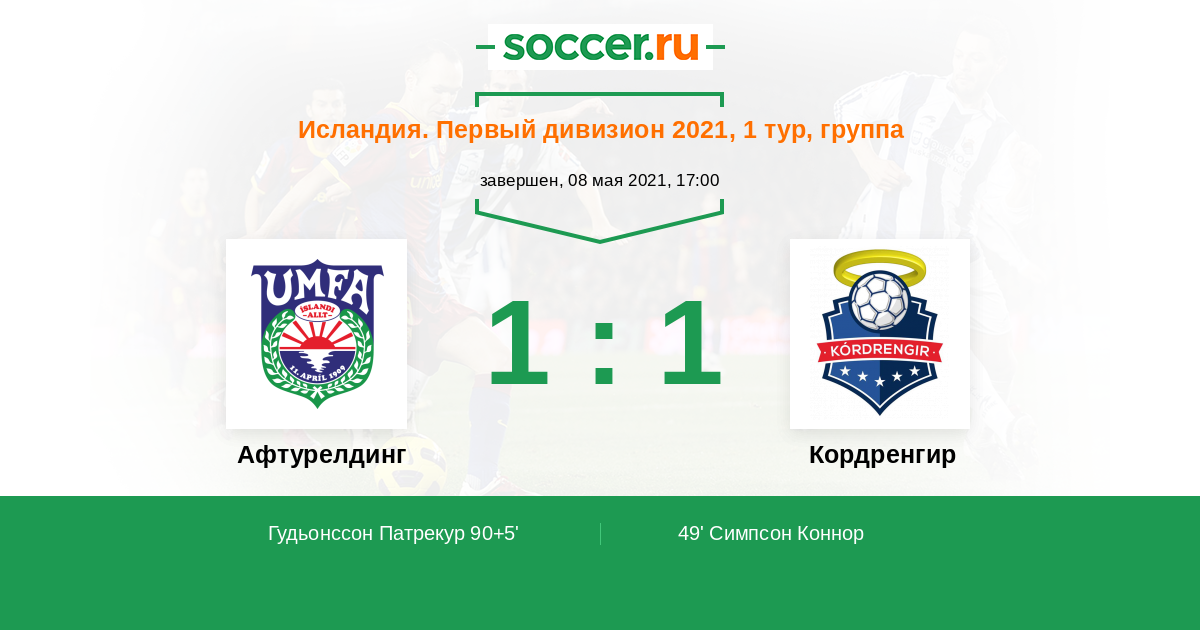 Протокол матча Афтурелдинг против Кордренгир