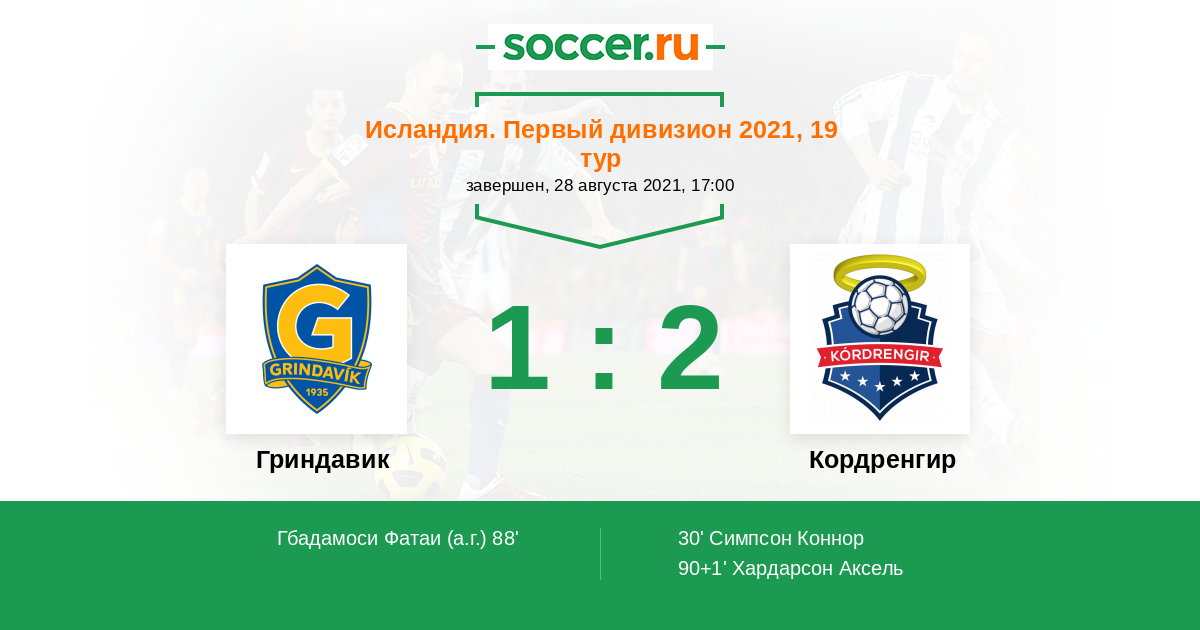 Протокол матча Гриндавик против Кордренгир