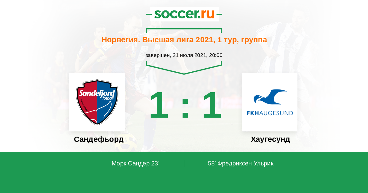 23' (1:0) Морк Сандер (6) (Кристоффер Хансен (11))