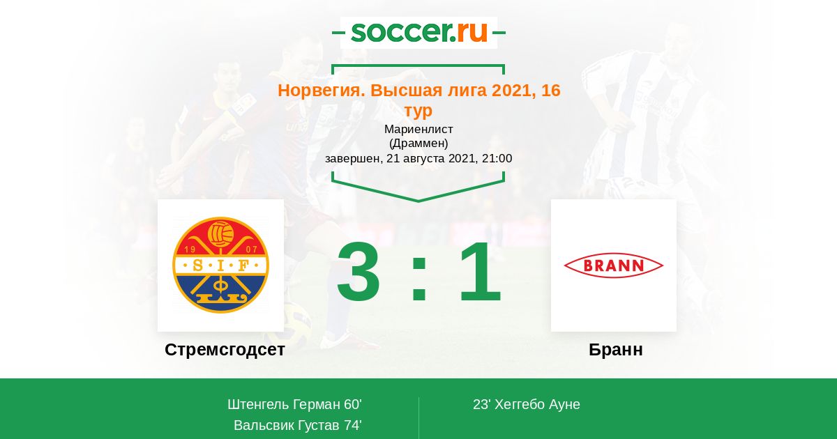 Протокол матча Стремсгодсет против Бранн