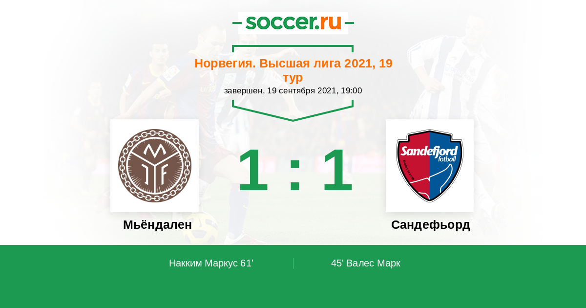 Протокол матча Мьёндален против Сандефьорд