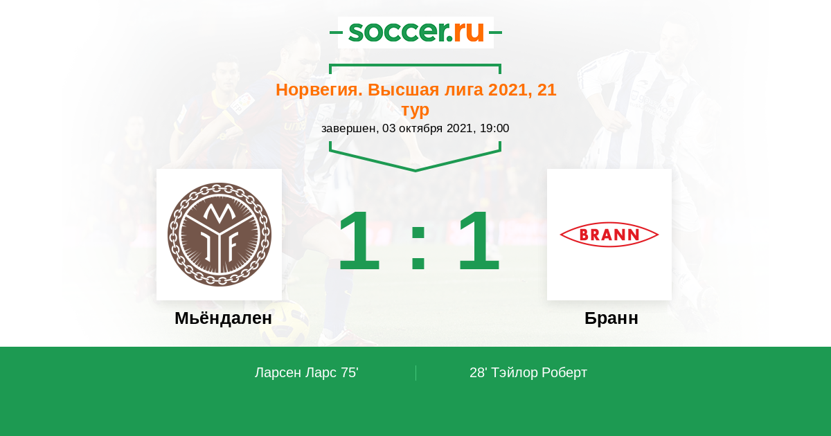 Протокол матча Мьёндален против Бранн