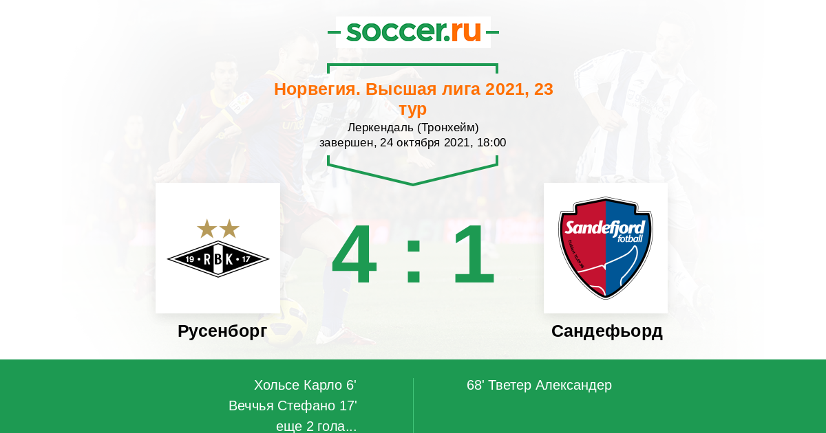 20' (3:0) Хольсе Карло (11) (Даль Рейтан Эрленд (2))