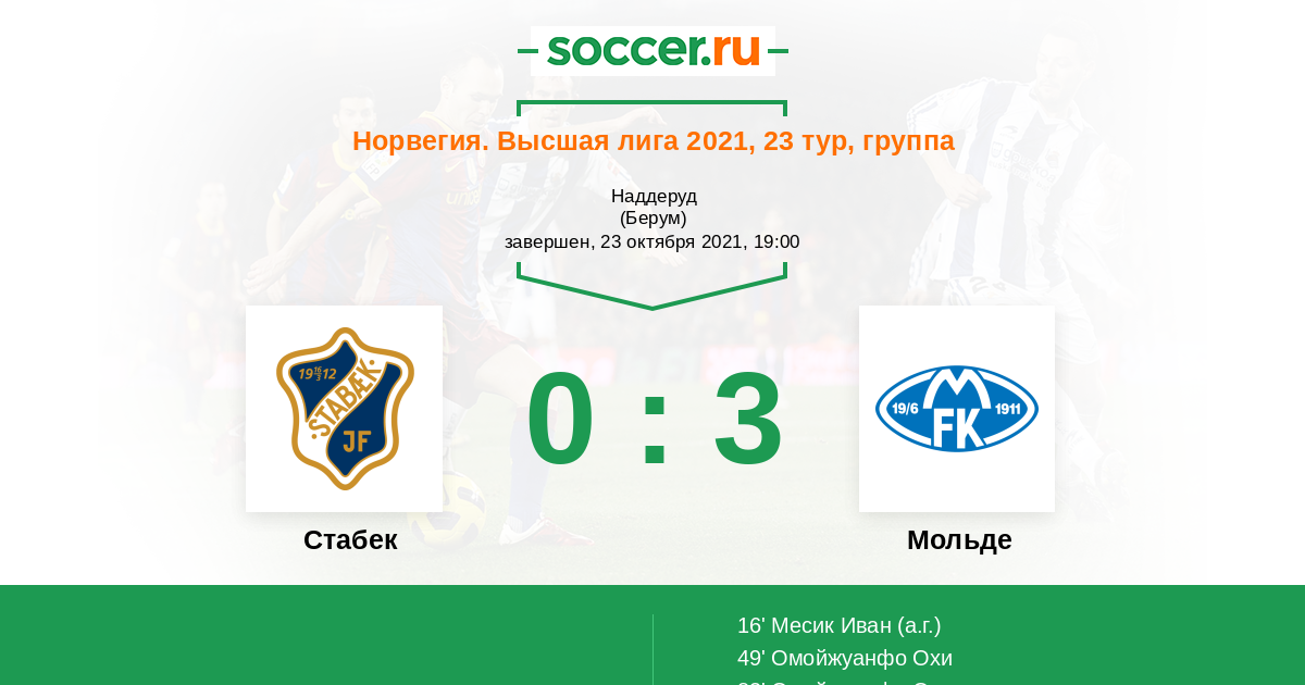 Протокол матча Стабек против Мольде