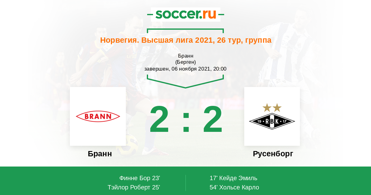 Протокол матча Бранн против Русенборг