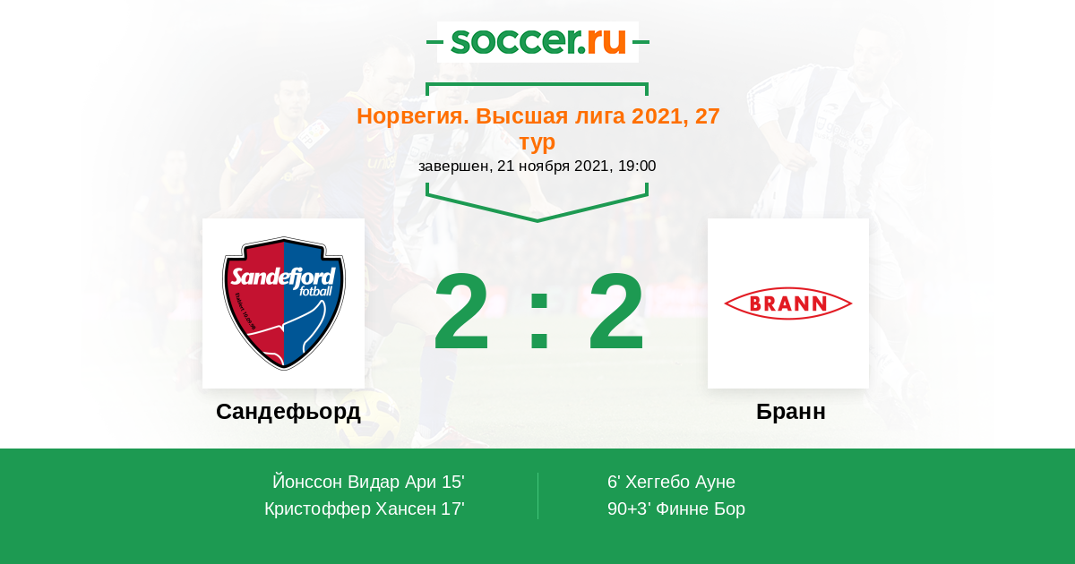 Протокол матча Сандефьорд против Бранн