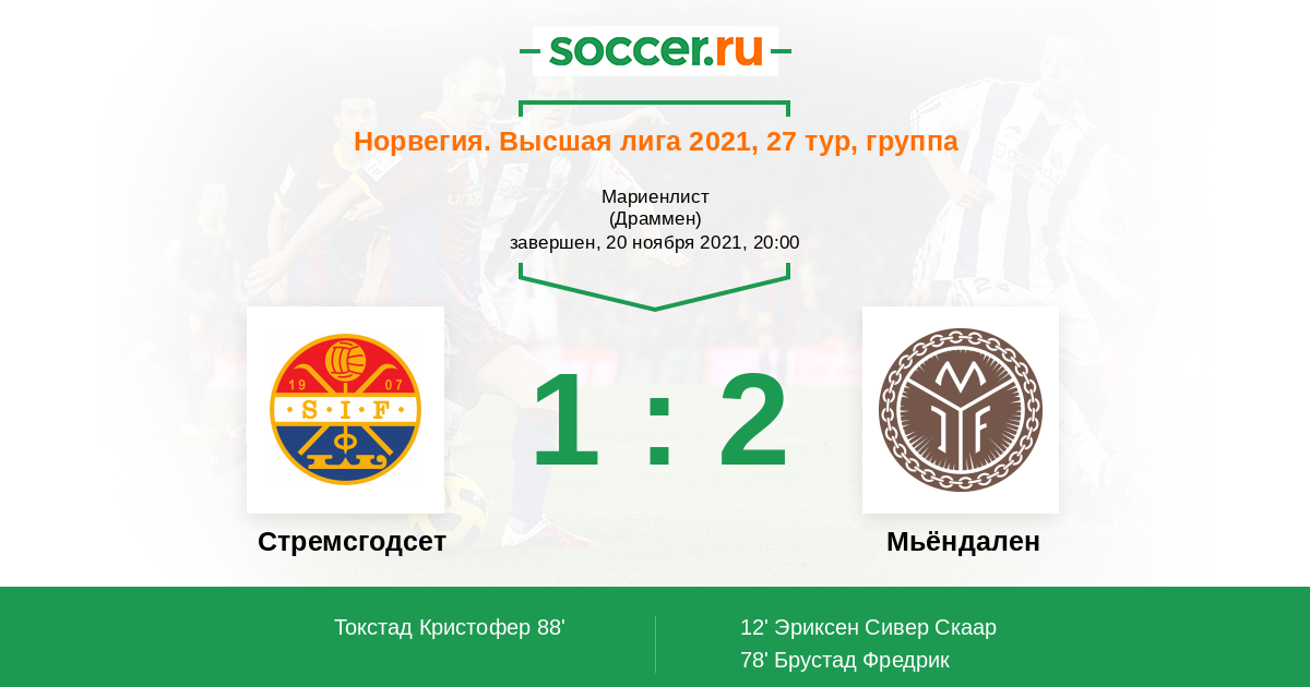 Протокол матча Стремсгодсет против Мьёндален