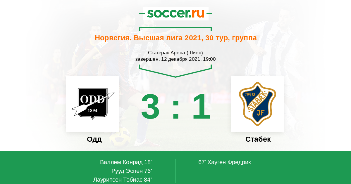 Протокол матча Одд против Стабек
