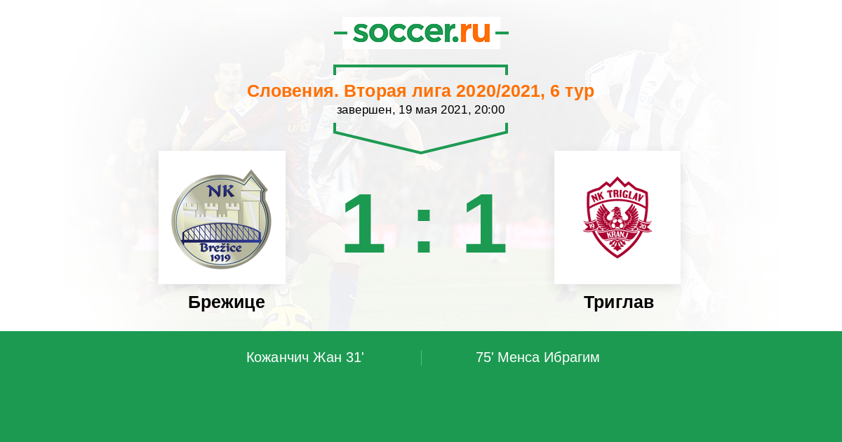 Протокол матча Брежице против Триглав