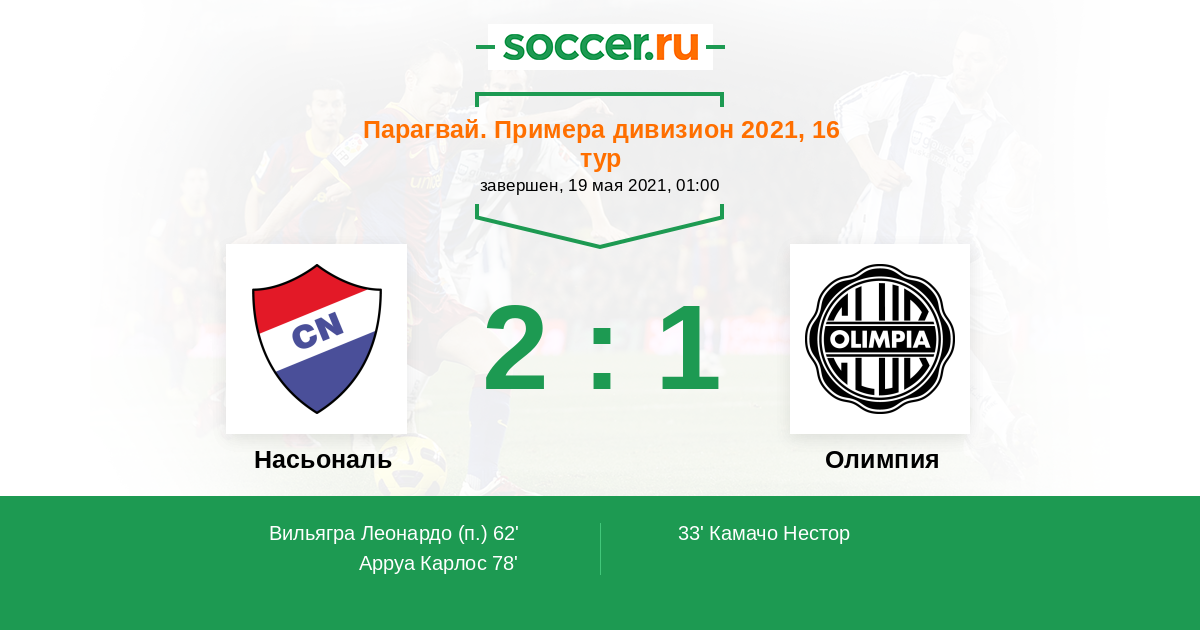Протокол матча Насьональ против Олимпия