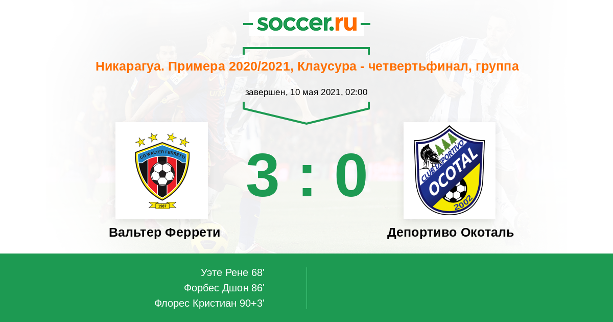 Протокол матча Вальтер Феррети против Депортиво Окоталь