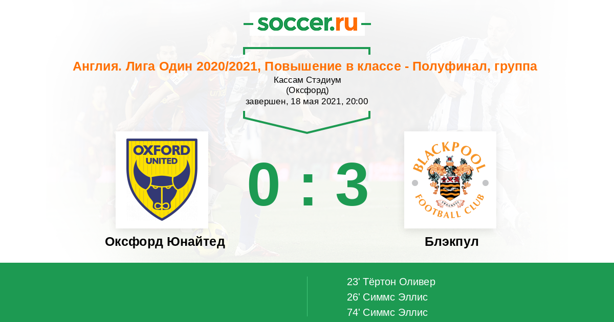 Протокол матча Оксфорд Юнайтед против Блэкпул
