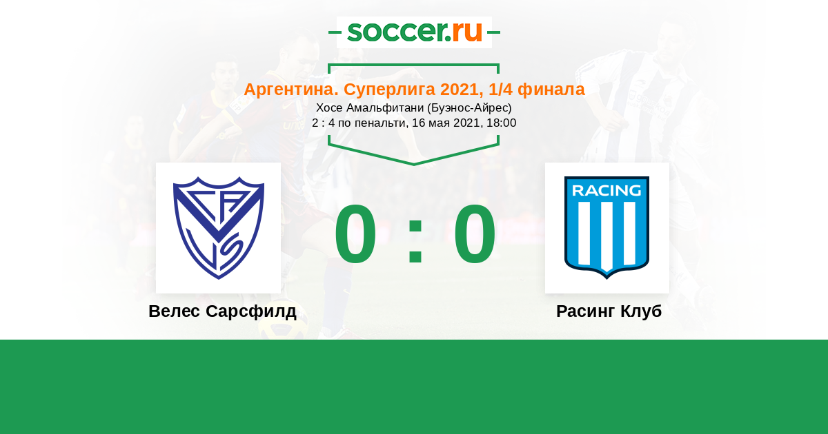 Протокол матча Велес Сарсфилд против Расинг Клуб
