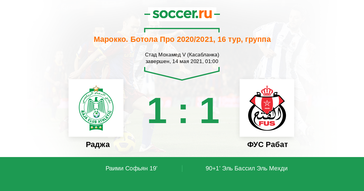 Протокол матча Раджа против ФУС Рабат