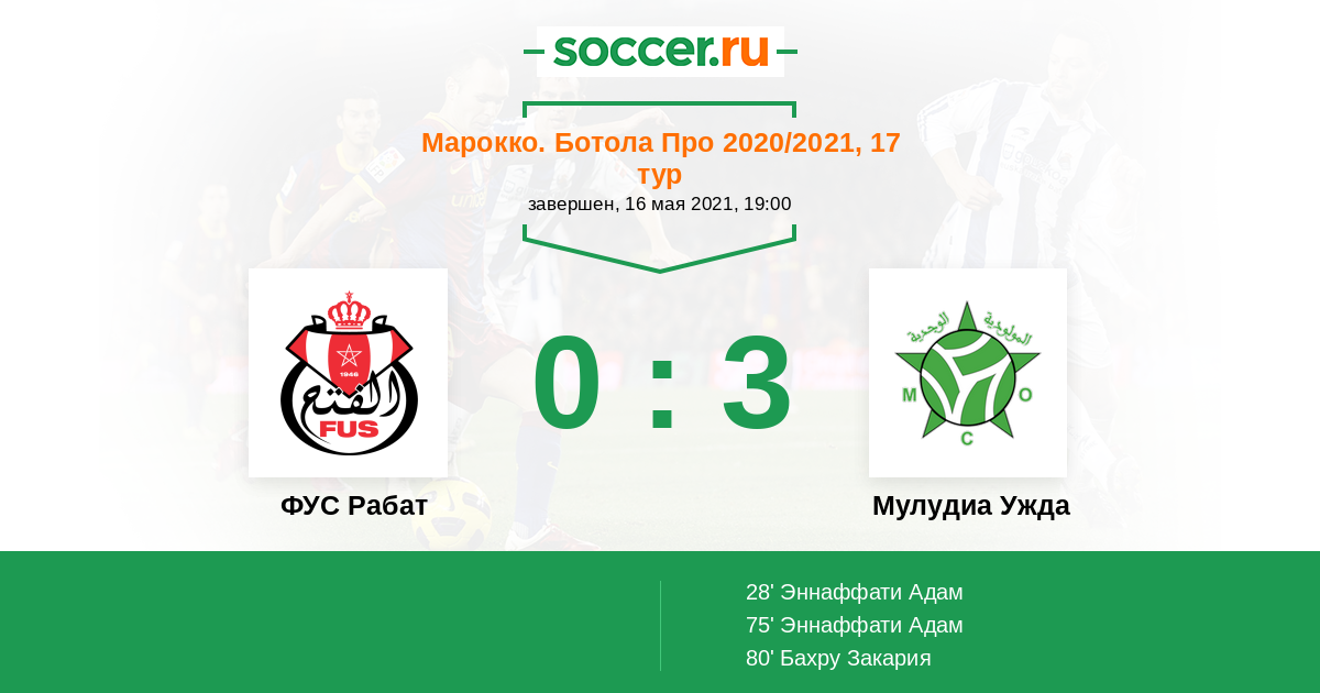 Протокол матча ФУС Рабат против Мулудиа Ужда