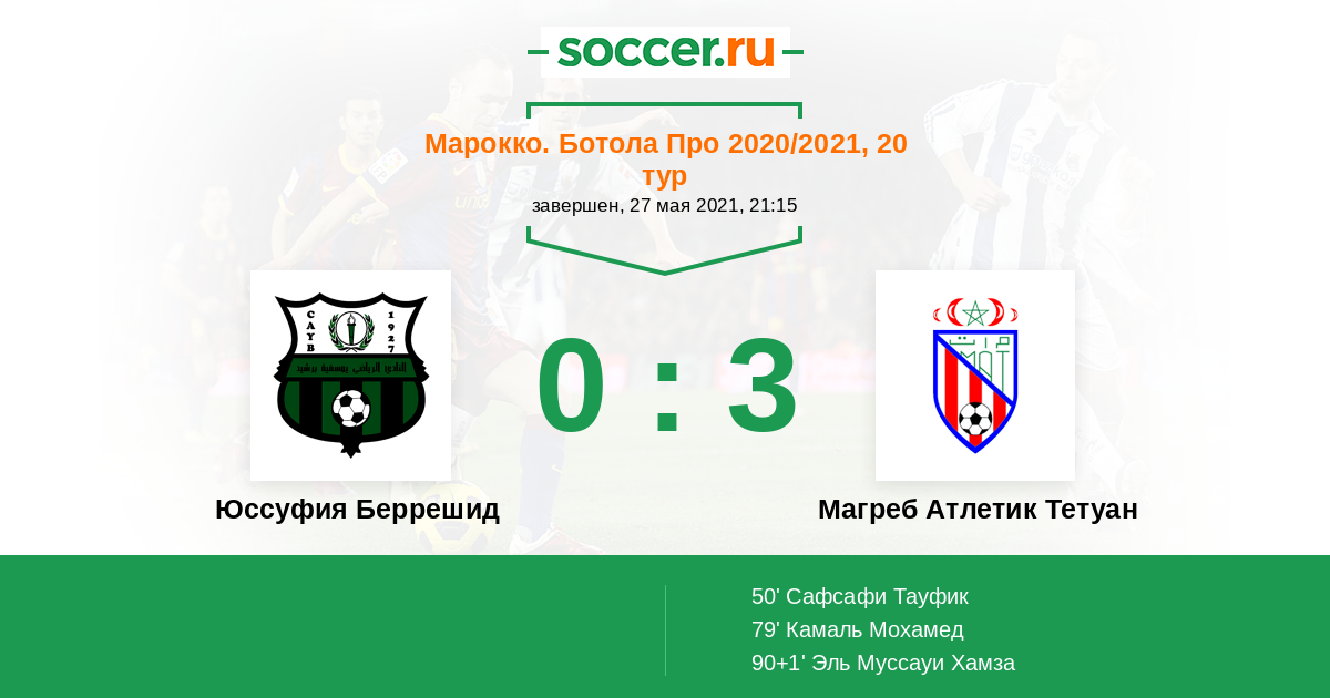 Протокол матча Юссуфия Беррешид против Магреб Атлетик Тетуан