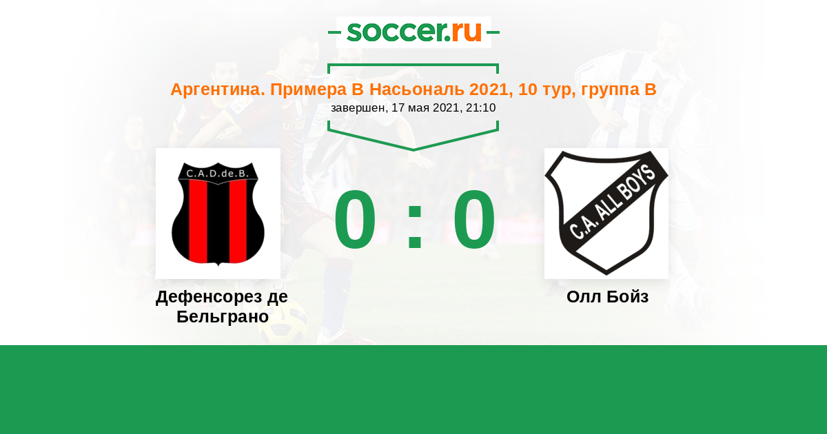 Протокол матча Дефенсорез де Бельграно против Олл Бойз