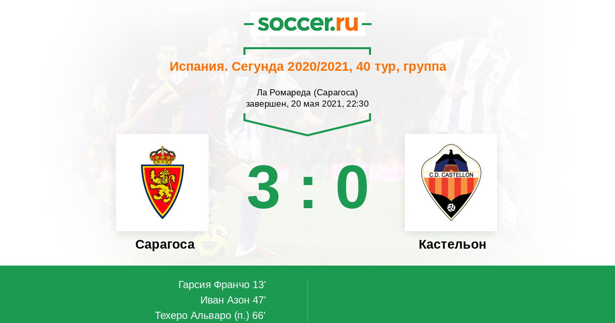 Протокол матча Сарагоса против Кастельон