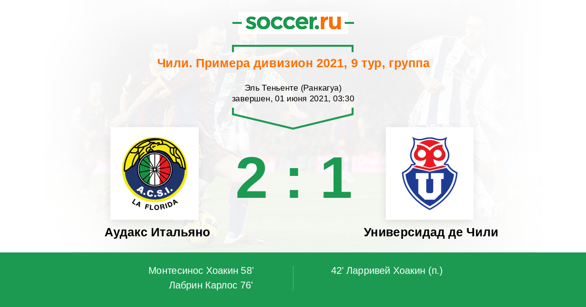 Протокол матча Аудакс Итальяно против Универсидад де Чили