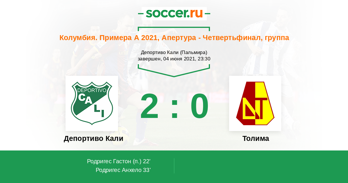Протокол матча Депортиво Кали против Толима