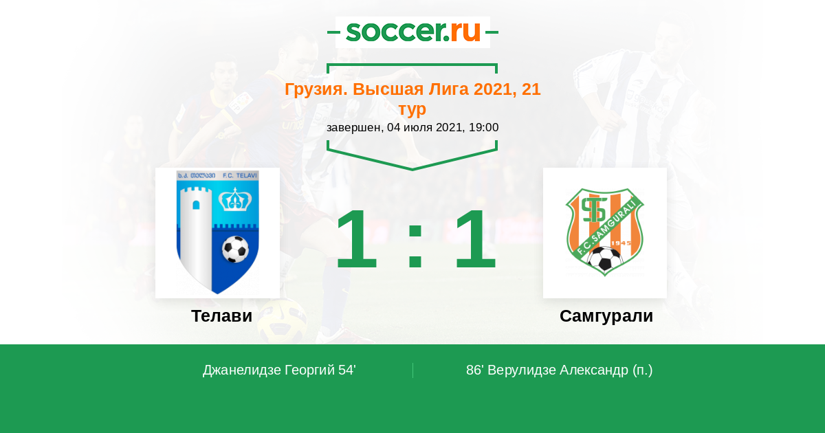 Протокол матча Телави против Самгурали