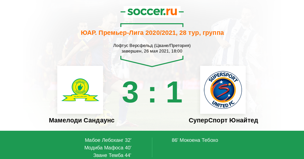 Протокол матча Мамелоди Сандаунс против СуперСпорт Юнайтед