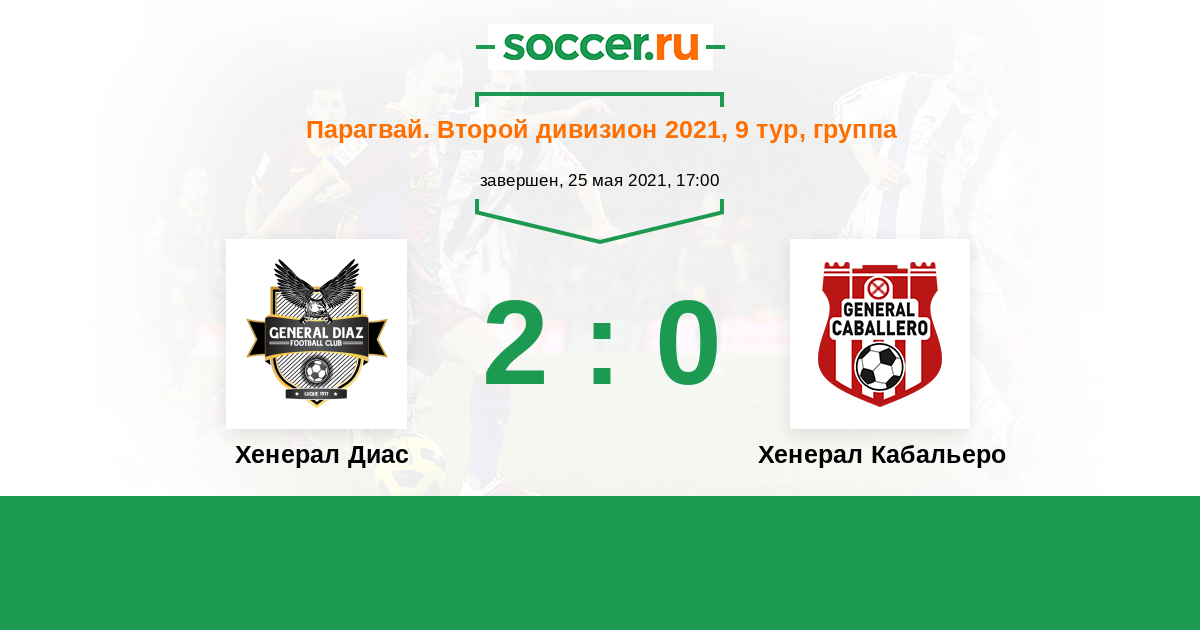 Парагвай. Второй дивизион 29.08.2021 Хенерал Кабальеро Логотип футбольный клуб Хенерал Кабальеро (Доктор-Хуан-Леон-Майоркин) 0:0 Логотип футбольный клуб Хенерал Диас (Луке) Хенерал Диас