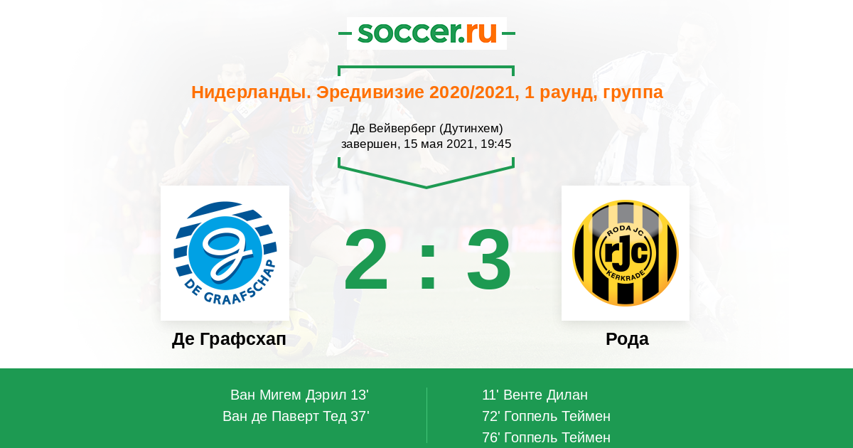 Протокол матча Де Графсхап против Рода