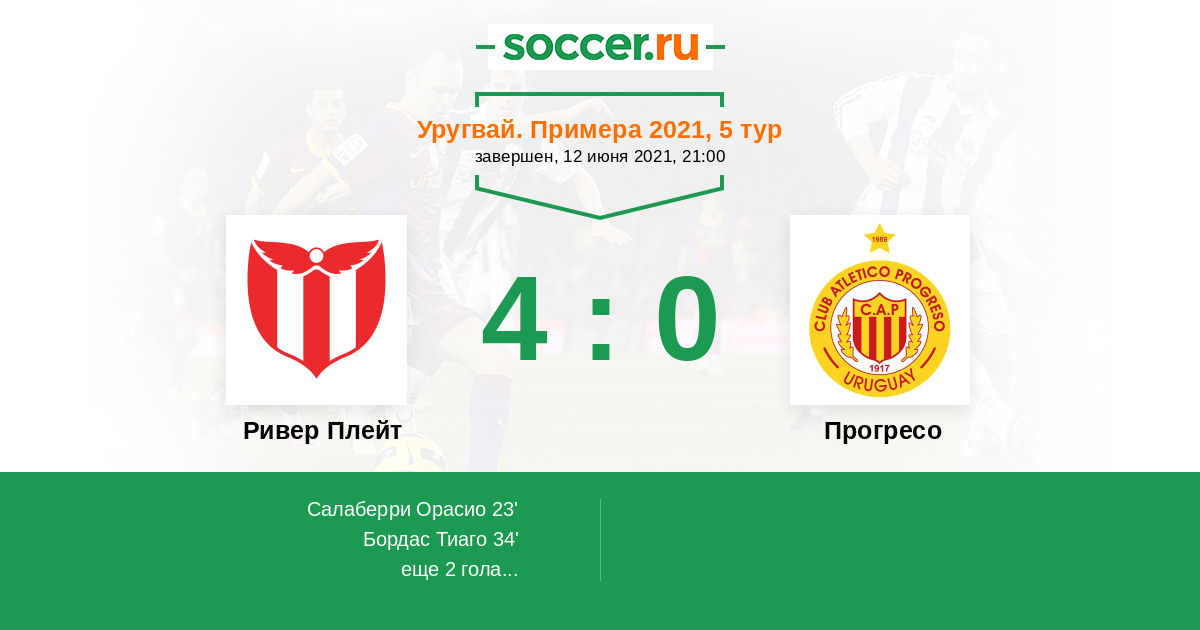 Протокол матча Ривер Плейт против Прогресо