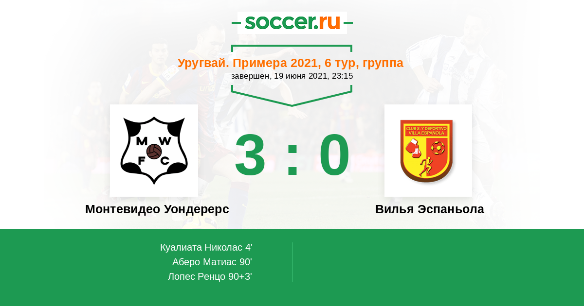 Протокол матча Монтевидео Уондерерс против Вилья Эспаньола