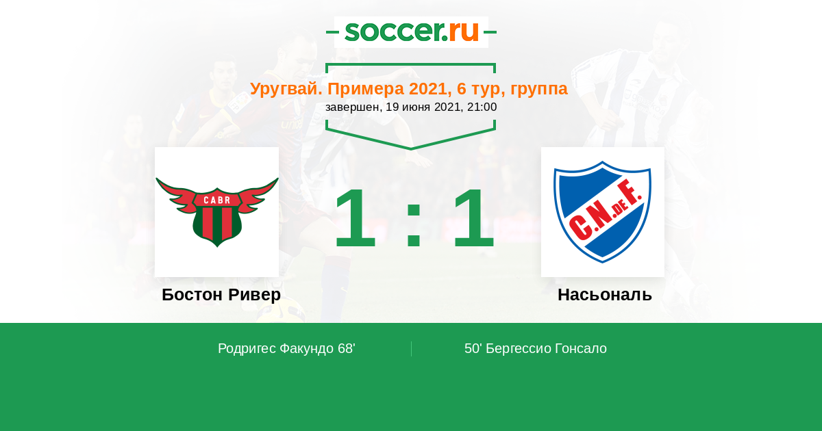 Протокол матча Бостон Ривер против Насьональ