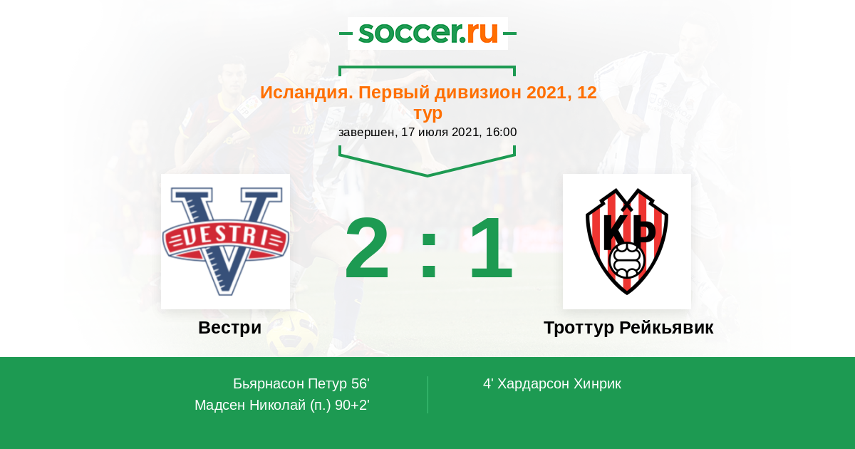 Протокол матча Вестри против Троттур Рейкьявик