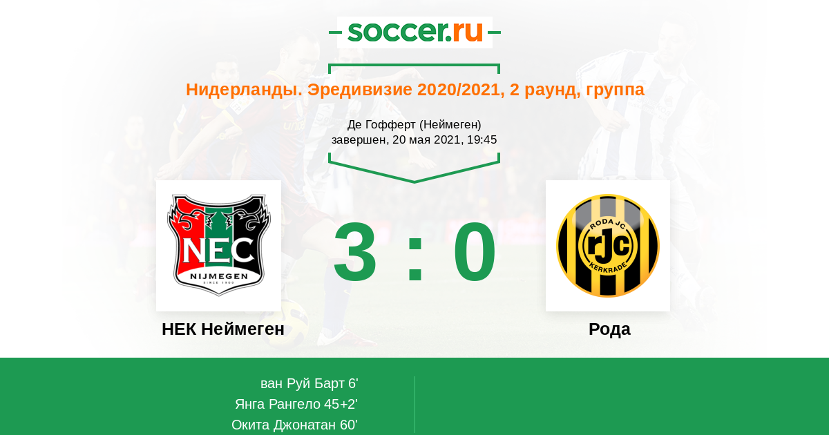Протокол матча НЕК Неймеген против Рода
