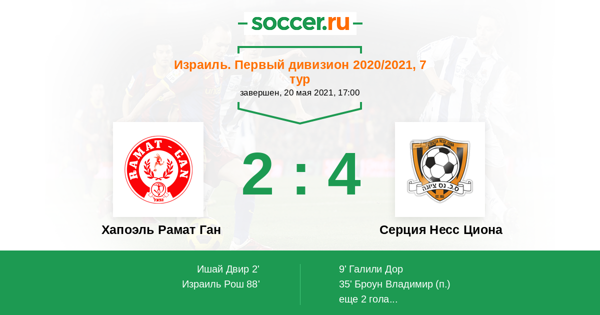 Протокол матча Хапоэль Рамат Ган против Серция Несс Циона