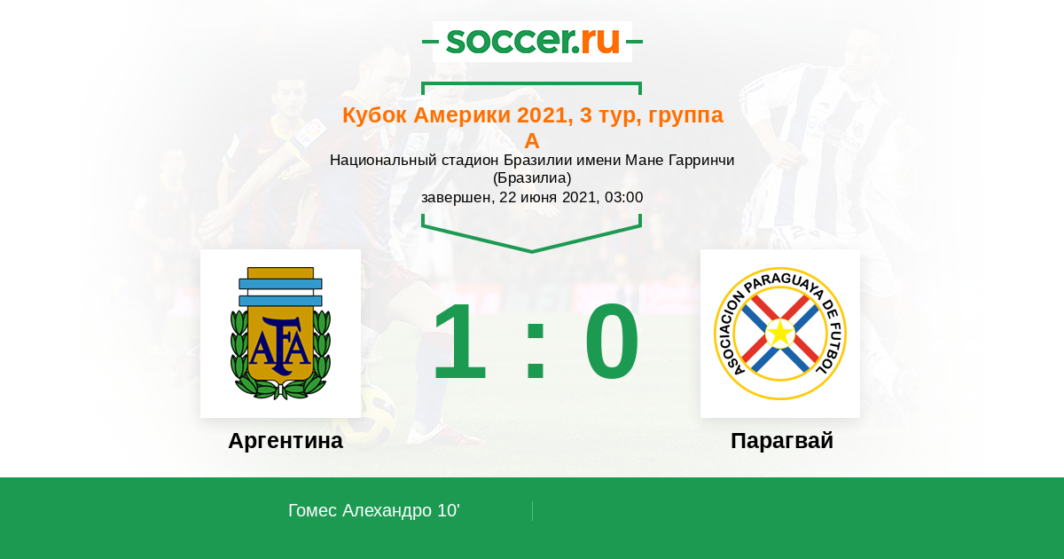10' (1:0) Гомес Алехандро (24) (Ди Мария Анхель (11))