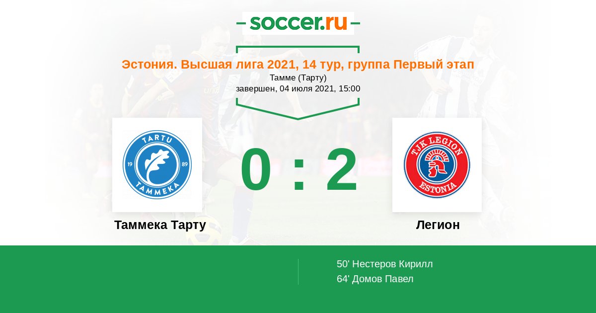Протокол матча Таммека Тарту против Легион